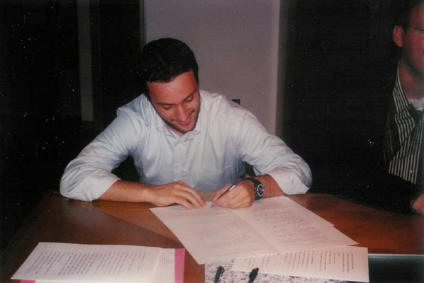 • Massimo Donaddio (primo presidente dell'Associazione) firma l'atto costitutivo de La Nuova Regaldi